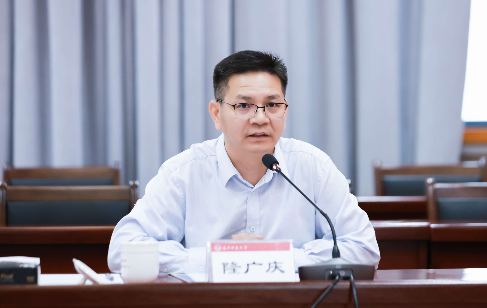 座谈会上,隆广庆校长首先向自治区体育局长期以来对学校事业发展的关心与支持表示衷心感谢。他详细介绍了南宁师范大学的办学历史、发展现状以及在体育教育事业上取得的显著成效。隆校长特别指出,像覃于妹这样在国际赛事中取得佳绩的优秀运动员选择南宁师范大学深造,是对学校人才培养质量的充分肯定。他期望以此次交流为契机,与自治区体育局进一步凝聚“共担使命、共育人才、共享成果”的战略共识,拓展合作领域,提升合作层次,共同为“重振广西体育雄风”、助力体育强区建设贡献智慧和力量。