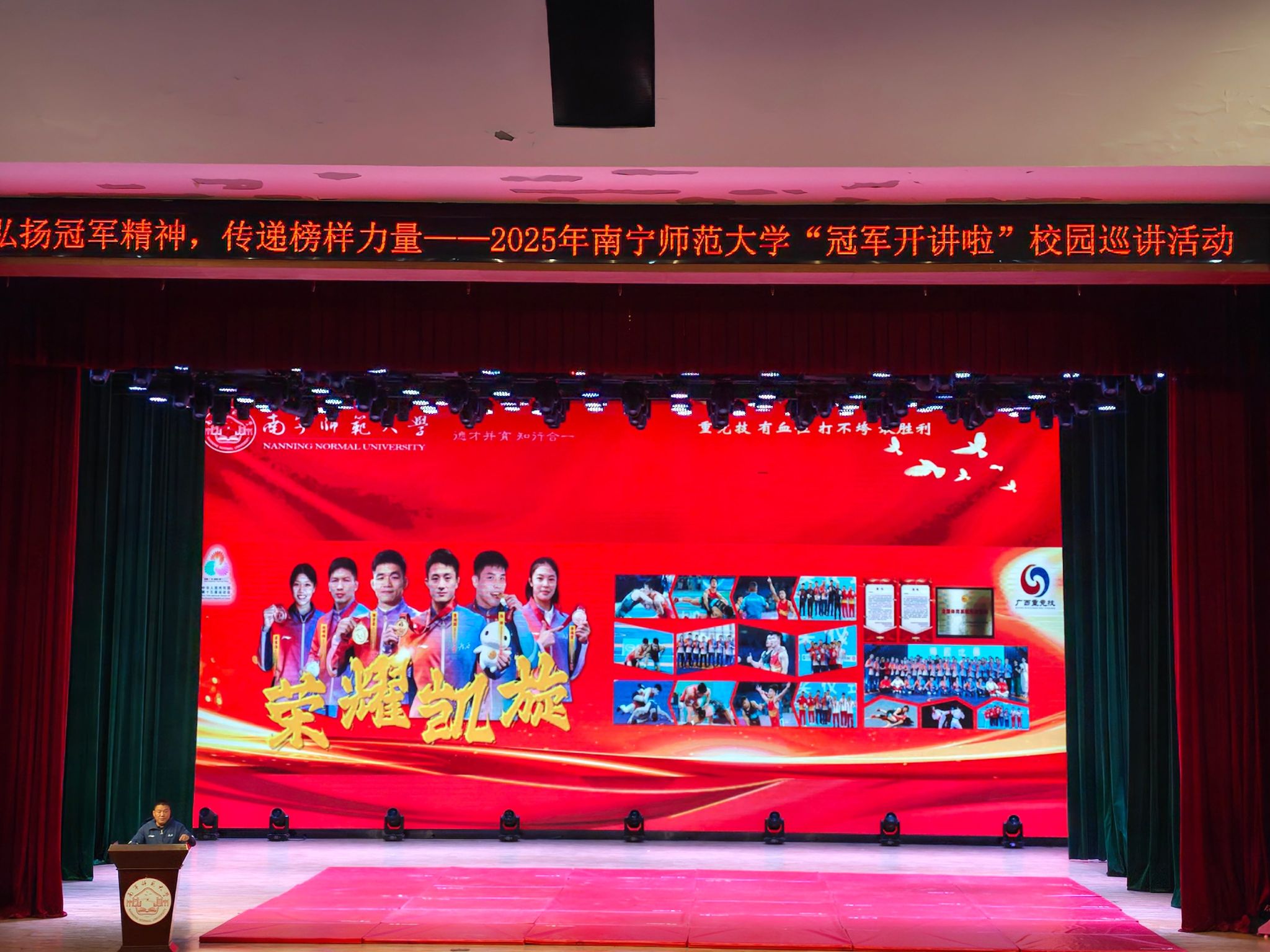 2025年11月29日下午,南宁师范大学武鸣校区音舞楼一号报告厅内气氛热烈、掌声不断,“冠军开讲啦”校园巡讲活动在此隆重举行。活动由成人动漫