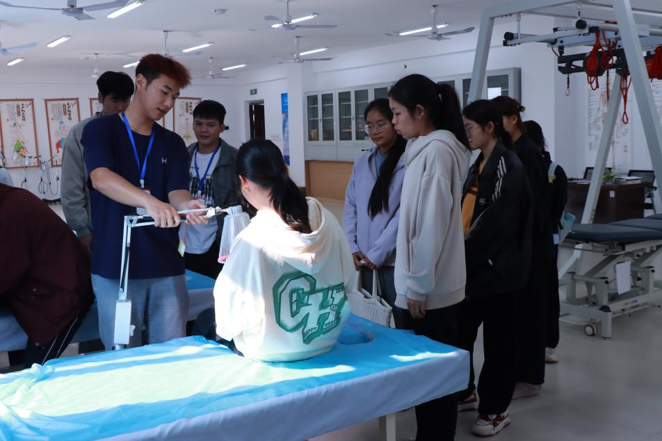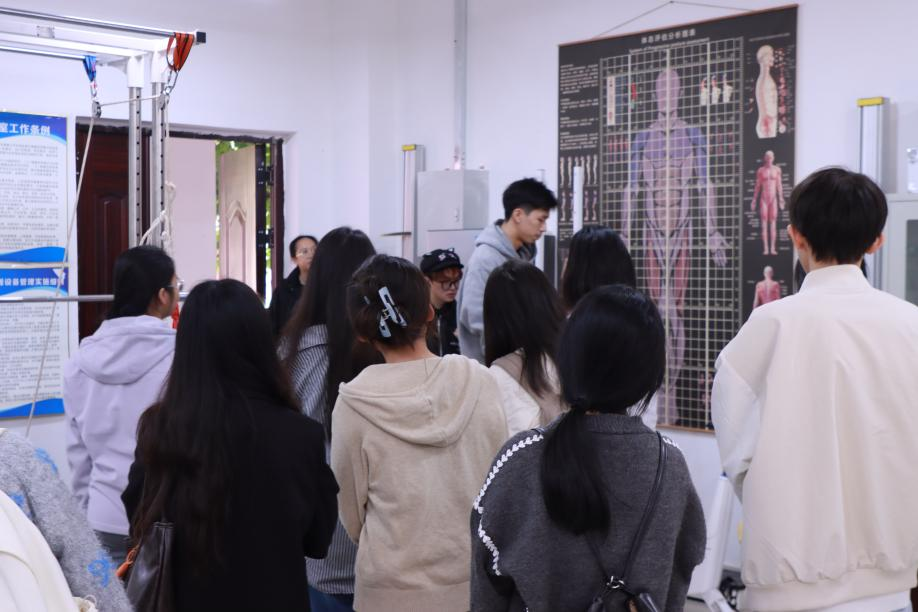 随后,同学们分批次走进专业实验室。通过参观体质监测实验室的运动数据采集设备、体育信息技术实验室的3D虚拟摄影棚、康复实验室的专业治疗仪器等,让师生们直观感受到“体教融合、科教协同”的办学特色。参观过程中,同学们不时驻足提问,实验室负责人结合实操案例耐心答疑,互动交流氛围热烈。最后,一行人前往三楼“南宁师范大学平安护航辅导员工作室”,了解工作室建设相关建设情况,在工作人员的细致介绍后,大家有序离场,为本次开放日参观环节画上圆满句号。