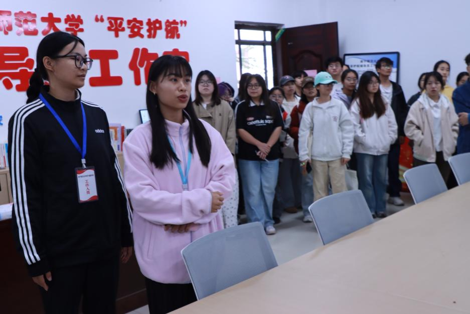 (图为参观南宁师范大学平安护航辅导员工作室)