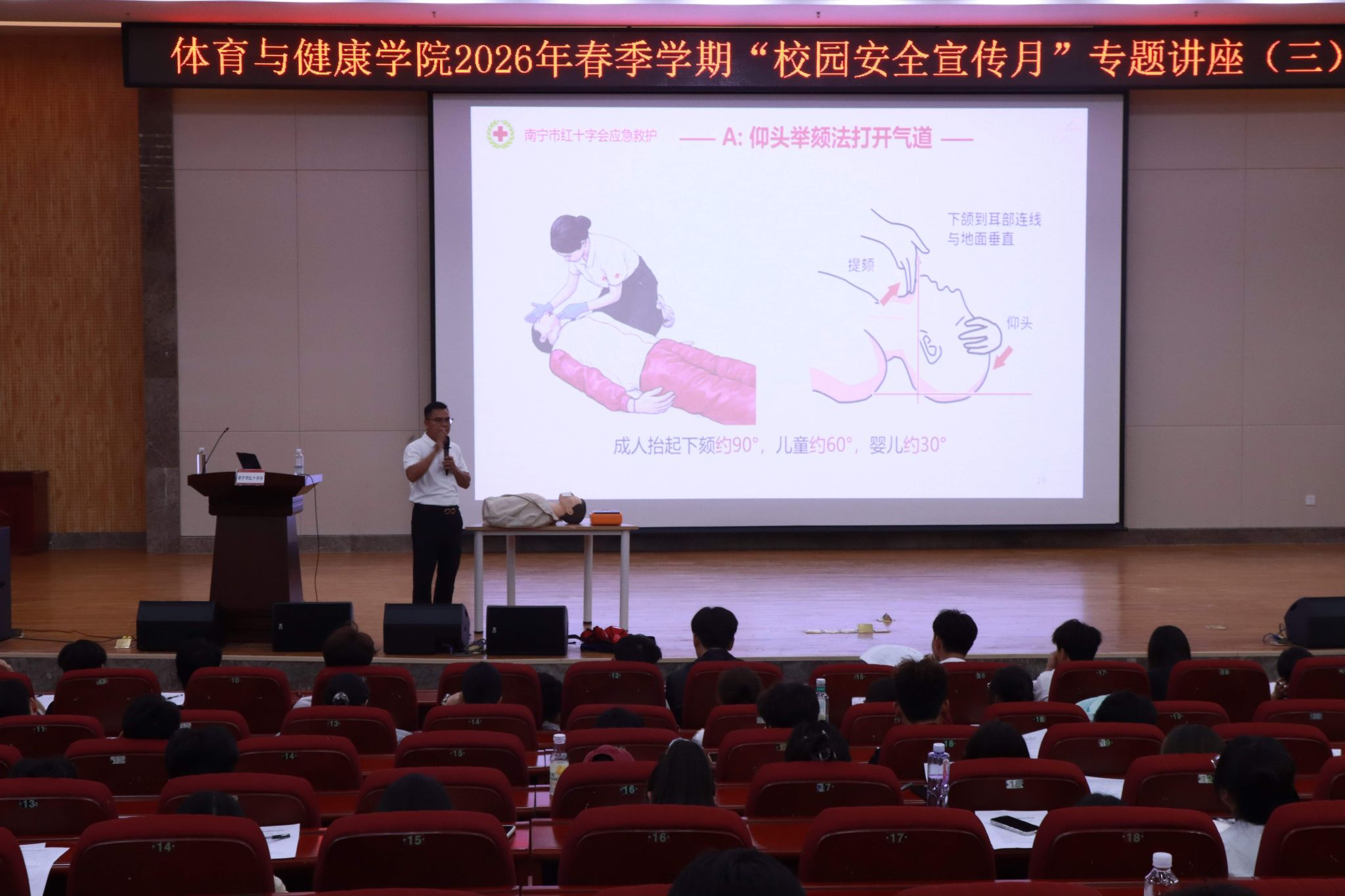 在武鸣校区图书馆报告厅成功举办应急救护专题培训。本次培训吸引了学院300名学生踊跃参与,采用理论授课、实操演练与分组考核相结合的方式,让急救知识入脑入心,使关键技能学以致用。